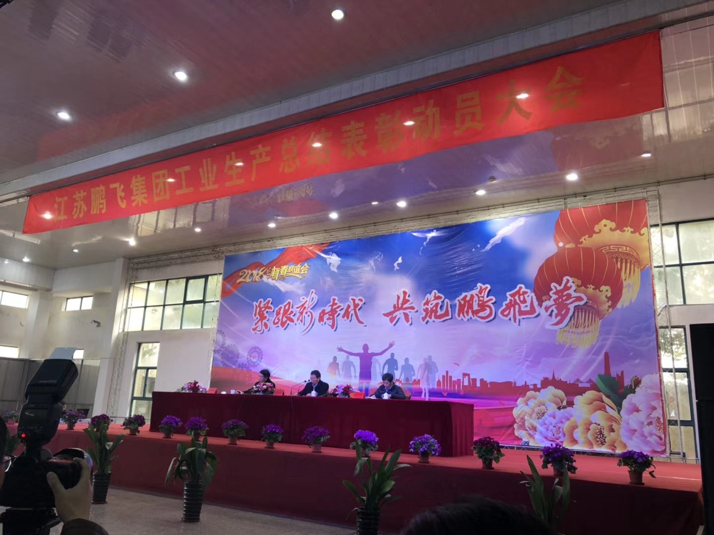 2018年2月20日(農(nóng)歷正月初五)上午8:08分,江蘇鵬飛集團(tuán)股份有限公司大禮堂前彩旗招展,鞭炮齊鳴。公司《緊跟新時代 共筑鵬飛夢》主題大會今天在此隆重召開。會上江蘇鵬飛集團(tuán)股份有限公司董事長王家安先生宣布: