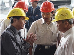 董事長(zhǎng)總經(jīng)理王家安(中)陪同巴基斯坦LUCY水泥有限公司領(lǐng)導(dǎo)層考察本公司生產(chǎn)現(xiàn)場(chǎng),并簽訂了日產(chǎn)3000噸回轉(zhuǎn)窯生產(chǎn)線設(shè)備供貨合同。