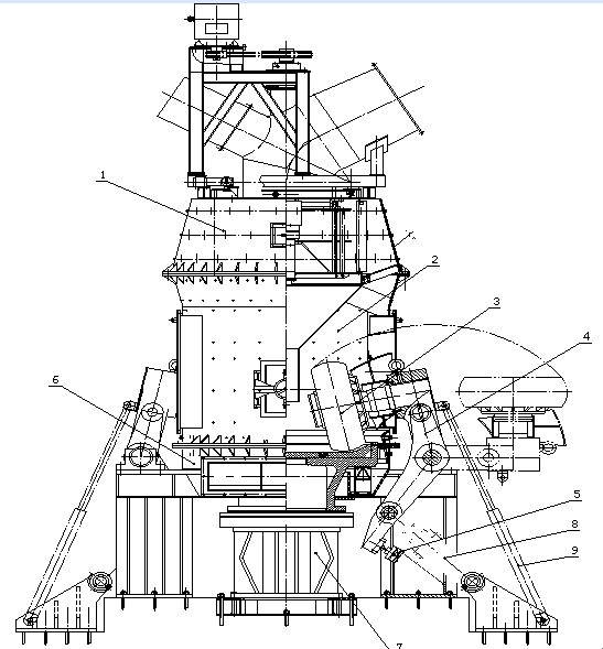 (7) 磨盤周邊上設(shè)有防止盤座磨損、調(diào)節(jié)風(fēng)環(huán)處風(fēng)速和盤上物料厚度的裝置,可確保立式磨的生產(chǎn)能力及其經(jīng)濟(jì)運(yùn)行。