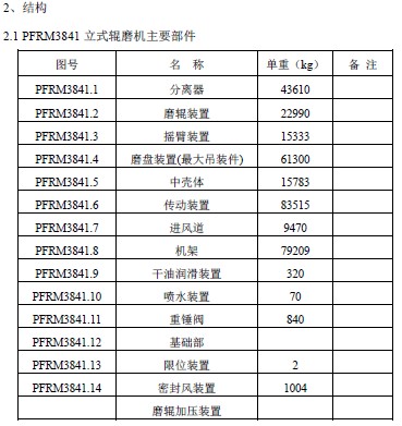 PFRM3841輥式磨用于水泥原料粉磨,其工作原理是:原料通過(guò)鎖風(fēng)閥、下料斜管落到磨盤中央,恒速旋轉(zhuǎn)著的磨盤借助于離心力的作用將原料向外均勻分散、鋪平,使其形成一定厚度料床。在此過(guò)程中物料同時(shí)又受到磨盤上多個(gè)磨輥的碾壓,并在壓力輥?zhàn)拥淖饔孟卤环鬯椤T陔x心力的連續(xù)驅(qū)使下使物料不斷向磨盤外緣運(yùn)動(dòng),離開(kāi)磨盤的物料遇到通過(guò)風(fēng)環(huán)進(jìn)入磨內(nèi)的熱氣體并隨之上升經(jīng)過(guò)磨盤中殼體進(jìn)入到分離器中,在此過(guò)程中物料與熱氣體進(jìn)行了充分的熱交換,水分迅速被蒸發(fā)。分離器控制著磨機(jī)出口的成品粒度,大于規(guī)定尺寸的顆粒被分離,送回至磨盤,只允許滿足要求的顆粒通過(guò)。