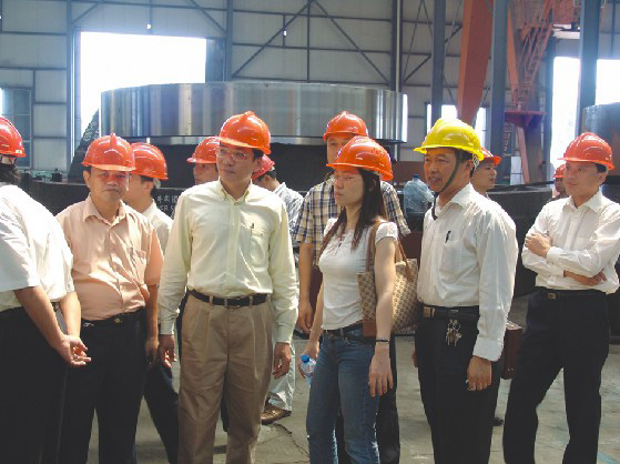江蘇鵬飛集團(tuán)總裁王家安的陪同下,越南海防建筑公司領(lǐng)導(dǎo)層參觀公司加工基地